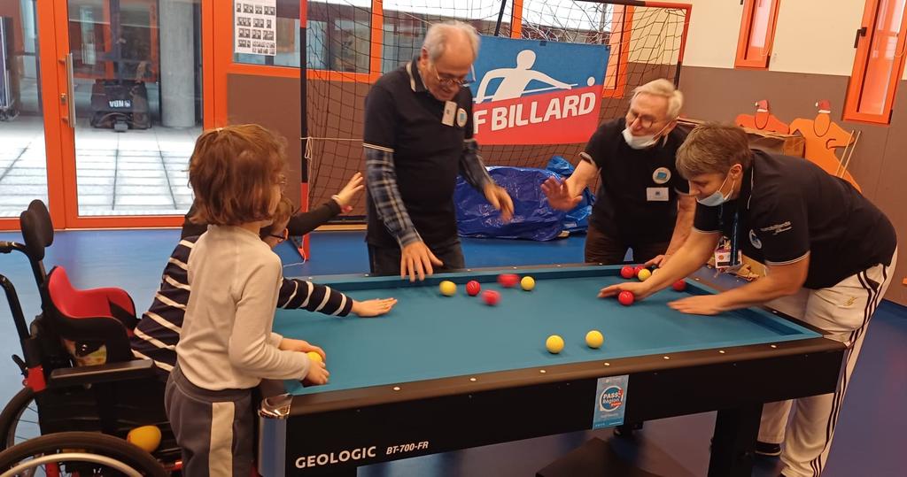 Le temps d’un après-midi, le gymnase de l’hôpital s’est transformé en un espace de découverte et de bonne humeur grâce à l’installation de deux tables de billard Decathlon. Très attendue, l’équipe du club a été accueillie avec chaleur par les enfants, leurs familles et les équipes hospitalières.